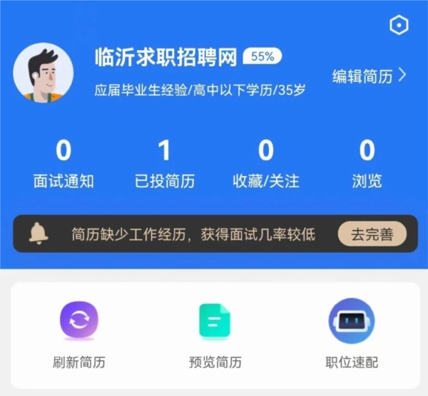 用户能够在线创建简历,也可以上传本地已有的简历,并且支持对简历模块进行自定义设置。简历投递的记录会被实时保存下来,这样便于用户随时跟踪投递的进度。当企业HR收到用户投递的简历后,系统会自动向求职者发送通知,提醒他们简历已被查收。