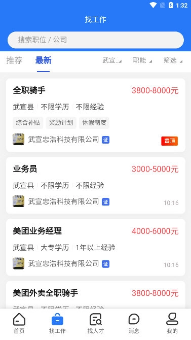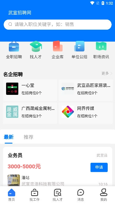 武宣招聘网是一款十分实用的求职招聘工具,用户可以便捷地了解本地的就业资讯,找到理想的工作机会。这款软件尤其适合大学生群体用于实习和求职,平台汇聚了丰富的岗位资源可供查询,还支持用户在线创建和完善个人简历,并能依据所学专业及求职需求智能推荐匹配的岗位,让求职过程更省心。启动软件后,只需输入具体的岗位关键词,就能浏览到所有相关的职位信息,在线查看岗位职责与企业详情,完成简历投递,视频面试功能也让沟通更高效,全方位提供贴心的求职服务。