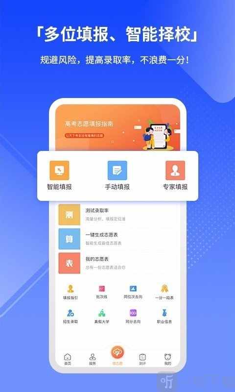 七云志愿软件为报告志愿者提供了优质服务,借助智能在线评估满足用户定位需求,众多名师可提供在线指导,让用户无需纠结哪所学校更适合填报,也不必担心分数浪费。