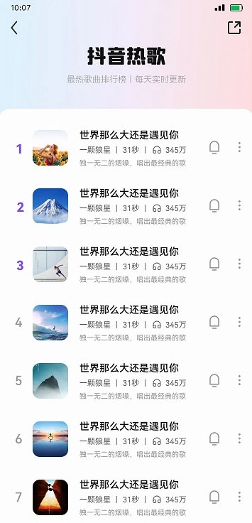 最美铃声是一款集合了大量优质铃声的彩铃应用,不管您想要通知音效还是电话铃声,这款软件都能满足您的需求。不管是喜爱潮流热点的年轻用户,还是钟情经典情怀的资深乐迷,都能通过这款应用找到适合自己的独特铃声。该应用还加强与版权方的合作,扩展更多音效场景,为用户带来更丰富的听觉享受。