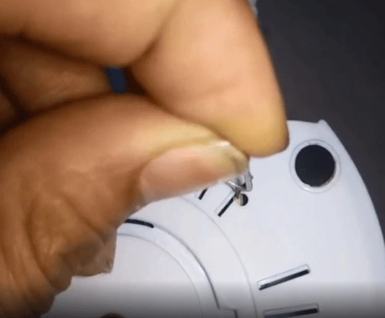2、准备一根卡针,将卡针插入小圆孔内,按住孔里的按钮。