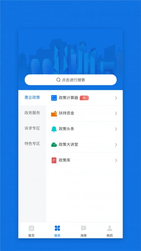 3、具备政策查询与匹配、资金申报、业务办理、诉求纾解、阳光代办、服务超市等多元服务功能,达成政策一站通、诉求一键提、业务一窗办、服务一网汇的目标。