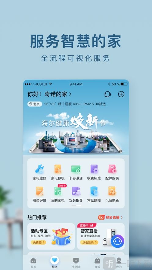 海尔智家这款软件十分实用,它不仅能为大家提供多种多样的服务模式,还有丰富的商品资源可供大家自由选购。要是遇到任何问题,都能在线上反馈,并且会有专业人士为你解答。感兴趣的朋友别错过,赶紧来体验吧。