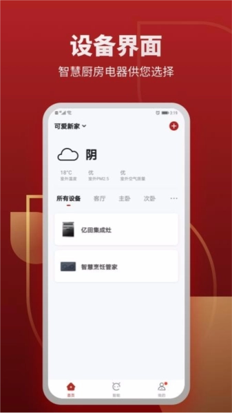 亿田智厨是一款功能丰富的手机智能厨电服务应用。用户能远程操控自家的亿田智能厨电系统,既具备独立操作即可完成智能烹饪的功能模块,又设有专属服务助力烹饪更便捷。只需连接对应设备,软件便能帮用户轻松开启智能厨房生活,涵盖智能烹饪、线上调控、远程做饭等多元功能与服务,让用户全方位畅享智慧厨房体验;此外,平台除连接厨房设备外,还可绑定空调、照明灯等其他智能设备,覆盖客厅、主卧、次卧、厨房等各类生活场景,满足不同用户对智能生活的多样化需求;所以,若想便捷体验智能生活,用户可通过这款软件实现——只需在手机安装,就能完成移动操控与管理,轻松开启智能生活,操作简便易用,值得一试。