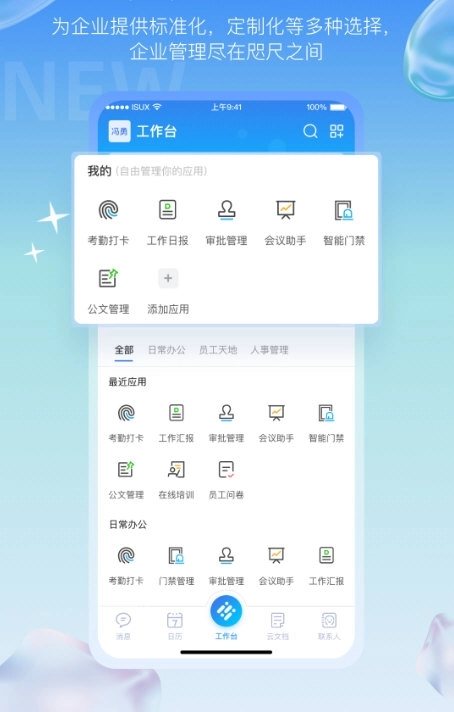 3、高效实用的应用软件平台,涵盖日常办公、客户管理、员工天地、行政管理等多种应用类型,助力您的办公更高效便捷。