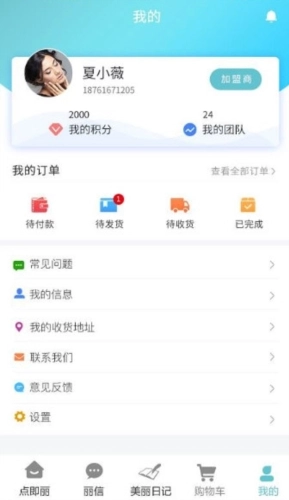 1、点即丽设有清晰明了的个人中心财富数据板块,在此可查看自身积分及所属团队的数据信息。