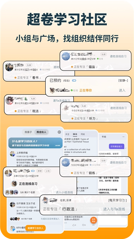 搭着学是一款优质的打卡学习软件,致力于帮助用户提升学习效率与体验。用户可以在平台上寻找学习搭子,通过互相监督的方式让学习更有动力和成效——软件支持双方查看彼此的学习情况并进行打分,还能及时匹配志同道合的学习伙伴,以互相监督的模式共同坚持打卡,在彼此陪伴中让学习时光更轻松愉悦。 此外,用户可借助软件制定个性化学习计划,寻找合拍的学习伙伴,每日打卡以养成良好学习习惯,同时与好友互相检查学习任务的完成情况。小伙伴们也能发布自身的学习需求,精准匹配合适的学习搭档,携手完成学习目标。搭着学打破了传统单一的学习模式,让学习过程变得更有趣、更高效。