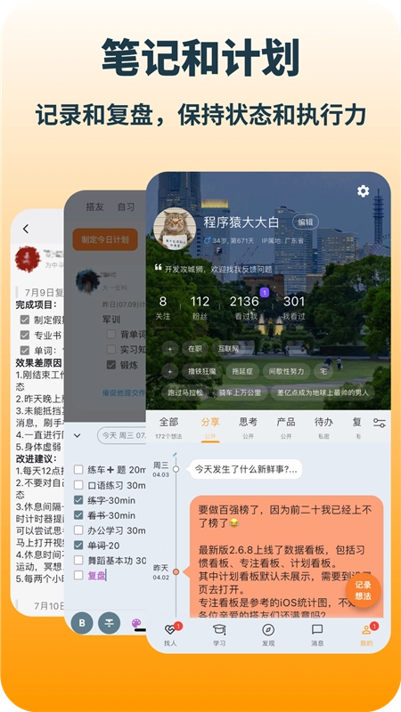 4.记录每日打卡的坚持天数以及当日目标的完成状况,每日都坚持进步一点点,努力成为更优秀的自己。