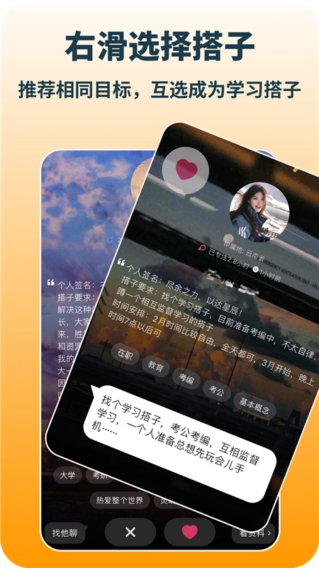 4、采用免费注册的模式,完成注册进入后即可匹配到适合自己的学习搭子。