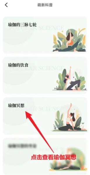在萌新科普页面中点击查看“瑜伽冥想”。