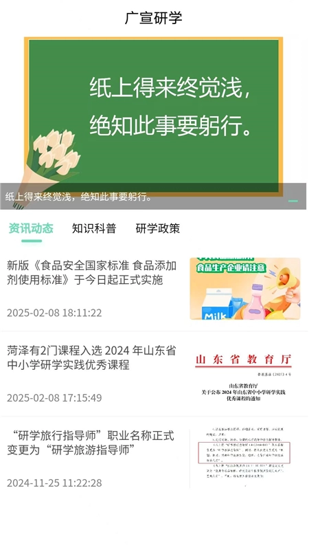 3、浏览研学相关资讯,全面知晓资讯动态、科普知识以及研学政策等内容,帮助提升学习效率;