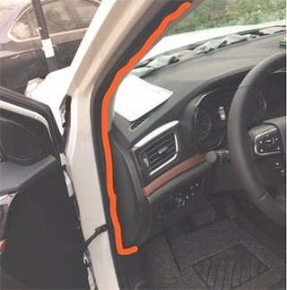 走线1的位置在A柱靠近车辆内侧的密封条处,直接用手将密封条掀开,就能把线压进去。要是担心手疼,也可以用小撬棒辅助操作。