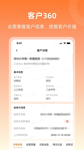 4、客户详情:通过查看客户详情页面,掌握该客户的详细信息及相关采购情况。