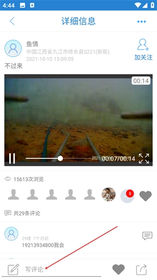 4、在视频播放过程中,用户可以借助进度条来调整播放进度,也能够点击【写评论】按钮,针对该视频发布评论以开展互动。