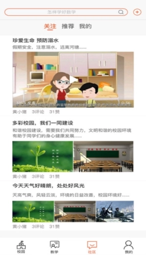 6、这里设有供学生、家长和教师交流的社区,大家可以在社区里分享各类动态。