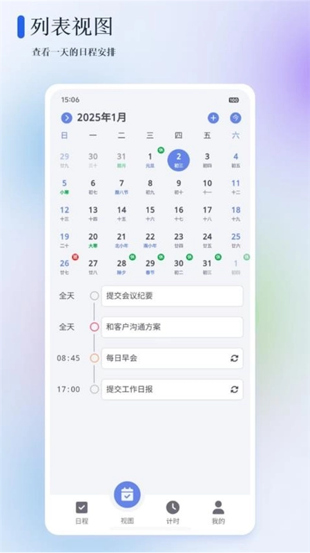 4、用户也能够对列表视图进行展示查看,以便随时安排日程。