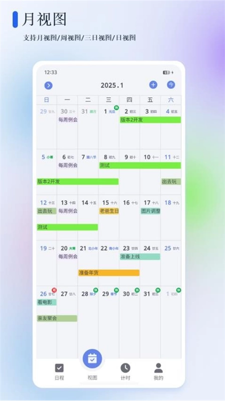 5、还能够查看月视图,以便清晰掌握自身的日程规划。