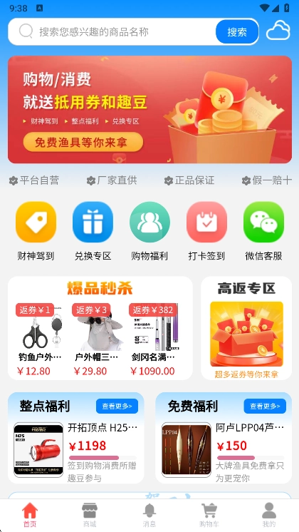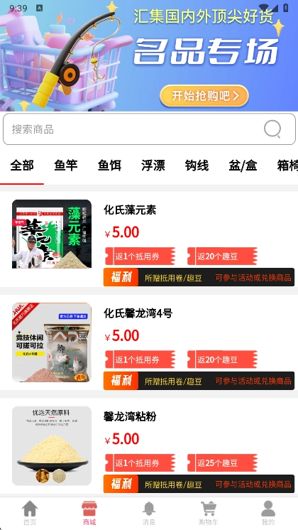 【惊喜福利享不停】每日都有免费福利、整点福利、财神驾到等多重福利活动,会员还能享受折上折优惠,新用户注册就能领取大礼包。另外,积分还能兑换好礼,助你用更划算的价格,把心仪的渔具带回家。