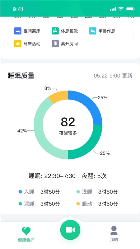 亲鹿看护运用先进的人体遥感技术,能够无接触监测用户的心率、呼吸数值及状态,一旦出现明显异常,会自动拨打子女或护工的电话。同时,它集成了广目视觉识别系统,可识别用户的睡眠、坐姿、是否离床、是否处于被护理中等状态,并对监护视频进行智能分类,方便子女高效回看所需场景。此外,设备支持4G SIM卡功能,即便家中没有WiFi网络,也能独立上网、拨打4G电话,让看护老年父母的过程更安心、更省心。