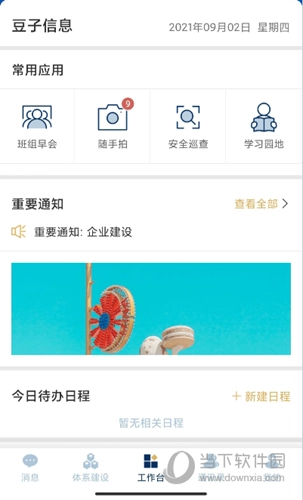 1、通知消息:整合企业通知、隐患公告以及各类应用提醒通知等多种通知消息;