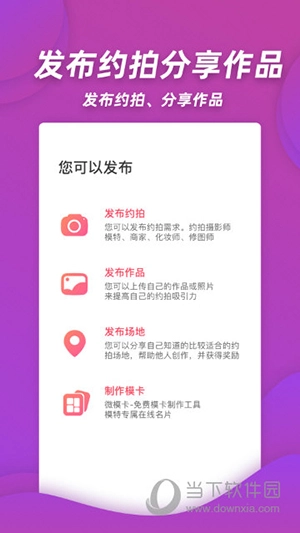 【约拍动态】你可以在线发布约拍动态,寻找合作对象。动态内容可包含你的约拍需求、个人作品或照片,有合作意向的人能在线向你发起约拍请求。