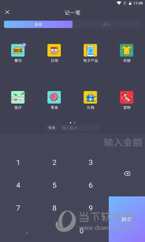 3、点击“记一笔”,选择支出或收入类型后,就能按照具体场景完成记账操作