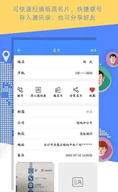 5、可自定义编辑个人名片信息,涵盖姓名、手机、邮箱、公司、职位等内容,且信息支持随时修改;
