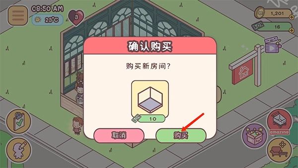 2、弹出是否购买新房间的提示,选择【购买】选项,