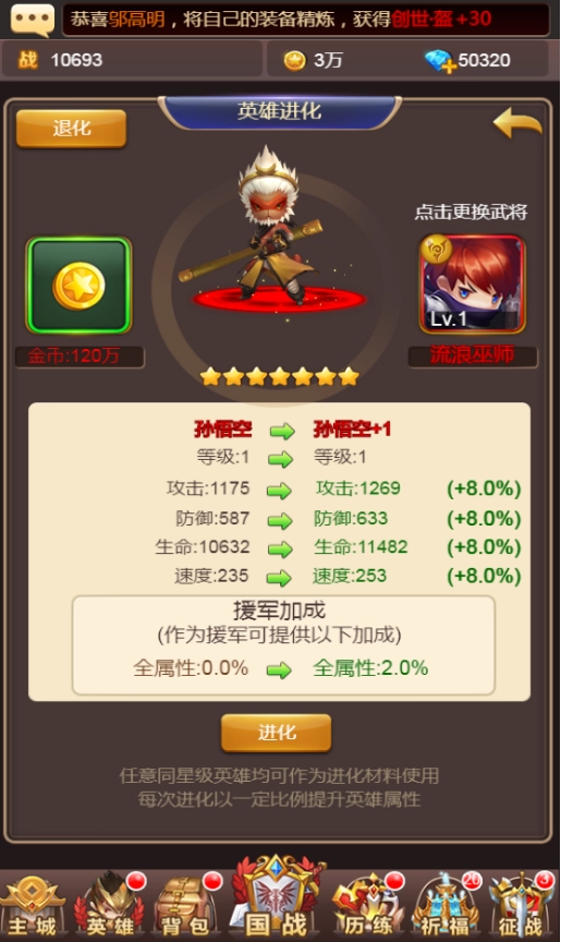 2当玩家角色达到25级时,即可解锁英雄进化功能。进行英雄进化,需要耗费一定数量的金币以及与待进化英雄星级相同的其他英雄。一旦进化成功,该英雄的所有属性都会得到提升,战力也会随之大幅增长。