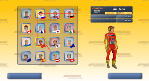 2. 参赛选手选择界面展示了来自多个国家的运动员阵容,并且能够依据个人喜好对代表队服装的配色进行配置。