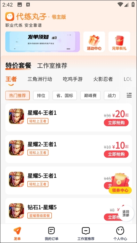 1、进入代练丸子app内,玩家根据需求来选择打手版/号主版。