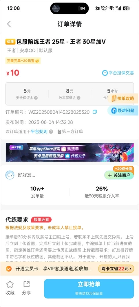 3、订单管理:用户可实时查看订单状态,包括代练进度、完成情况等。这一功能让用户能够随时掌握代练的进展情况,确保交易顺利进行。