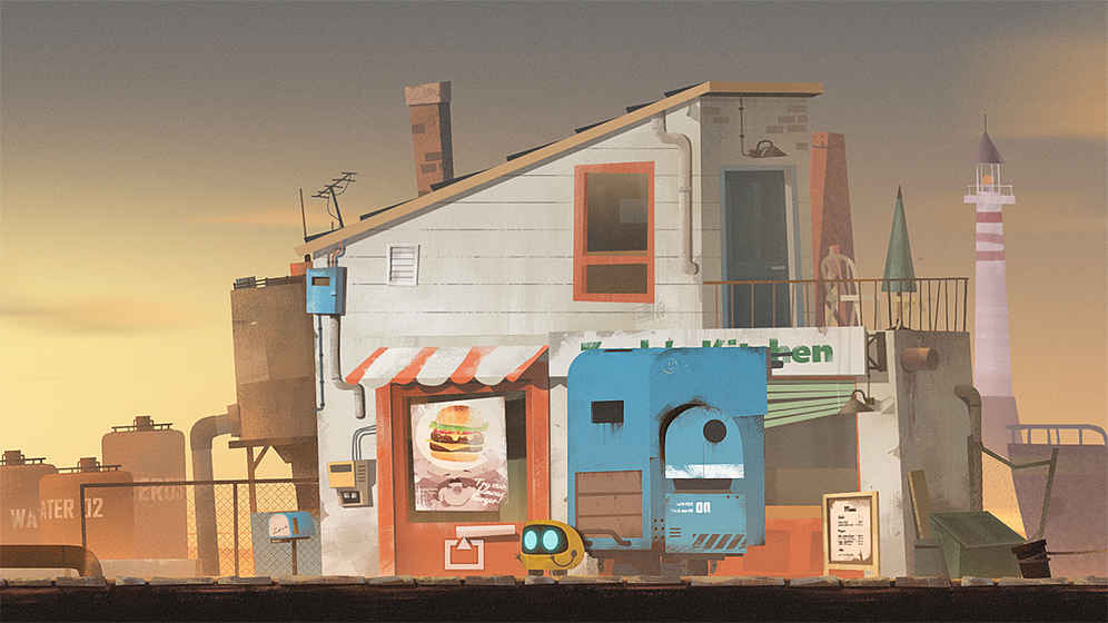 游戏画面运用末世废土风格,勾勒出一个满目疮痍的世界。然而,玩家并未因此产生极度绝望之感,原因在于游戏中玩家操控的主人公Abi和DD,设计得极为可爱。Abi身形小巧,DD憨态蠢萌,二者与周围破败的世界形成了强烈反差。