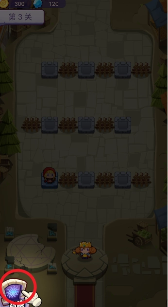 1、第一步,开启守护家园岛小游戏,进入游戏界面后,点击左下角的“召唤”按钮,召唤出强大的英雄。