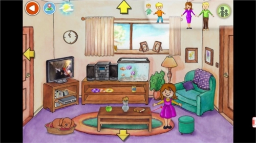 4、点击上下左右箭头可以切换场景,比如你想去客厅可以点击左边箭头。