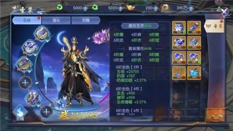 圣装分为“魂装”(左边六件套)与“魄装”(右边五件套)。激活多件装备的套装属性,对提升整体战力有帮助。当所有魂装达到6阶及以上时,能获得额外的时装衣服;若魄装达到相同阶数,便可获得时装武器。