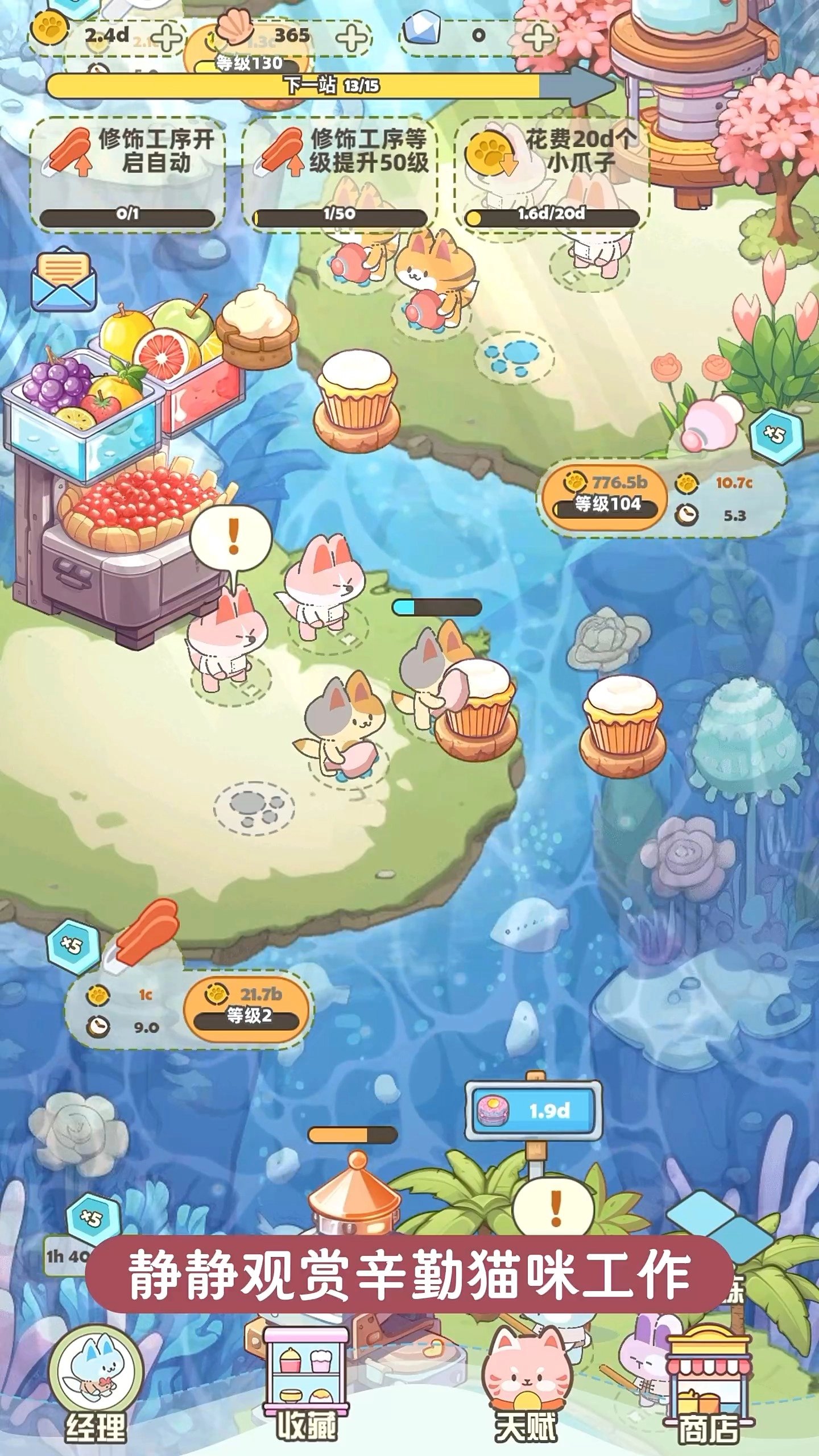 在猫咪工坊这款轻松上手的游戏里,只需完成各类经营任务,就能解锁全新物品,用来装点你海岛上的建筑,吸引更多可爱的小动物前来游玩。快来加入猫咪工坊,与猫咪们一同开启欢乐工作之旅吧!