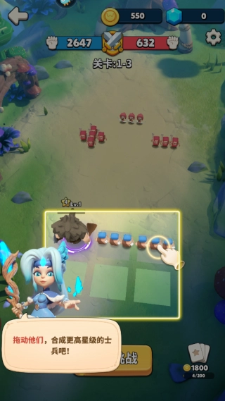 4、只需点击对应的物品或单位,然后将它们拖到一块儿执行合成操作,就能得到更强大、等级更高的物品或单位。