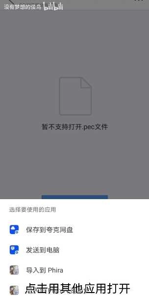 2. 点击进行打开操作,接着选择通过其他应用来打开,随后点击导入至Phira里。