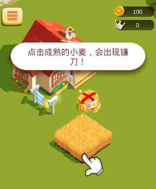 当你点击已然成熟的小麦时,镰刀便会出现。