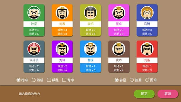 面临的困难如下:在金钱、粮食以及人口产出方面,相较于电脑低50% ;在战斗过程中,输出与防御相较于电脑低20%。