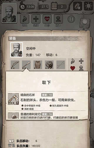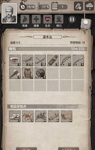 8、带上满满一包东西回家,然后迁移营地。树林关卡通过后会解锁三个新地点,我们优先前往离家最近的旧矿洞,在旧矿洞能获得一把镐子。这把镐子仅适用于挖矿,要是用它来攻击人,那效果可比石斧差远了。
