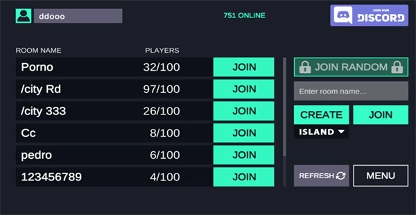 2、待进入新界面后,可以选择左侧的任一房间点击“join”即可加入该房间,或者点击右侧“create”创建一个新的房间