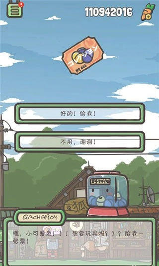 1、在杂货店门口有一台扭蛋机,只要我们有扭蛋票,就可以进行扭蛋,随机获得礼品。