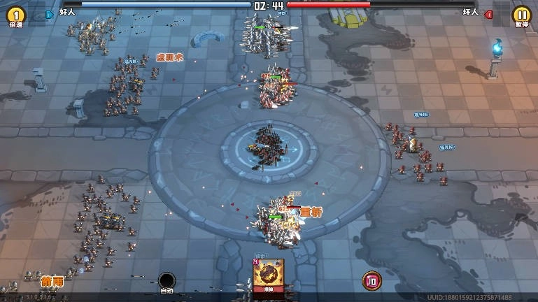 2、正式进入战场后,也就和看动画一样看着两军互打,虽然也可以点击右下角的技能图标,但玩家到达一定等级之后,就可以点击自动出招。
