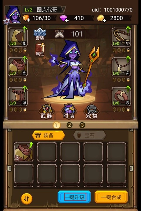 3、装备与宝石系统:玩家可以通过通关关卡或扫荡关卡获得装备和宝石,这些装备和宝石可以为玩家提供一定的属性加成,有些甚至可以改变技能机制。玩家可以通过合成来提升装备和宝石的品质,从而进一步提升自己的实力。