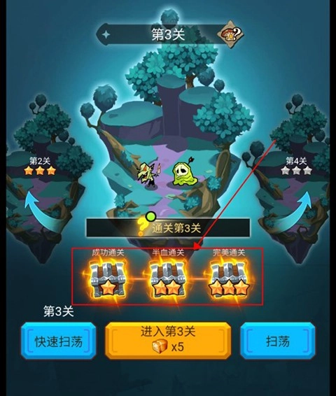 4、击败所有敌人即可通关,完成关卡后按照星级评价解锁宝箱,收获大量资源和惊喜奖励。
