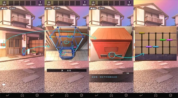 依照提示查看左右两边的灯笼,在右侧灯笼里取得蜡烛,并根据灯笼图案叠加解开小箱子。