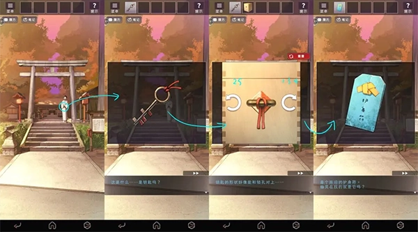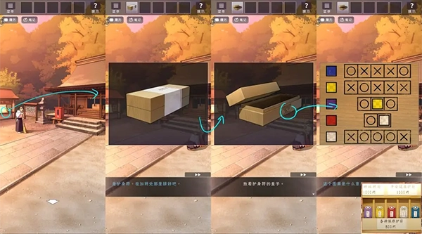之后与神主对话获得箱子,在箱子上查看提示并排好护身符。