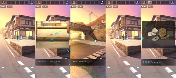 与幽灵对话后来到街道。与商店老板对话后调查商店门口,分别点击门口的草和猫爪印,之后来到河川处点击幽灵。再次回到店门口与弟弟对话得到弟弟的零花钱。
